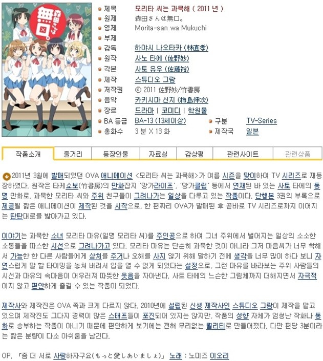 | 모리타 씨는 과묵 01화 (1280x720 XviD).avi | 45.2 M | AVI | - | - |