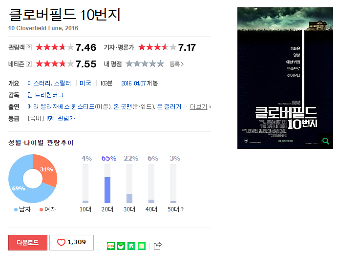 ico[ 클로버필드 10번지 ] 고화질 놈들은 예상 밖의 모습으로 찾아온다 1080P/