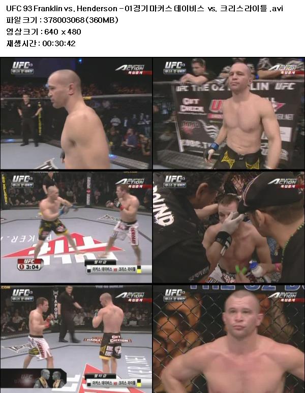 | UFC 93 Franklin vs. Henderson - 01경기 마커스 데이비스 vs. 크리스 라이틀 .avi | 360.5 M | AVI | - | - |