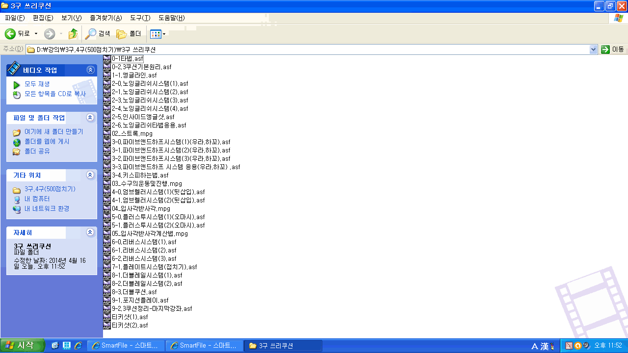 파일명 용량 확장자 재생시간 해상도
