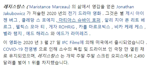 [자체자막][ 레지스탕스 ] 2020 고화질_1.mkv 3.1 G MKV - 1920x800