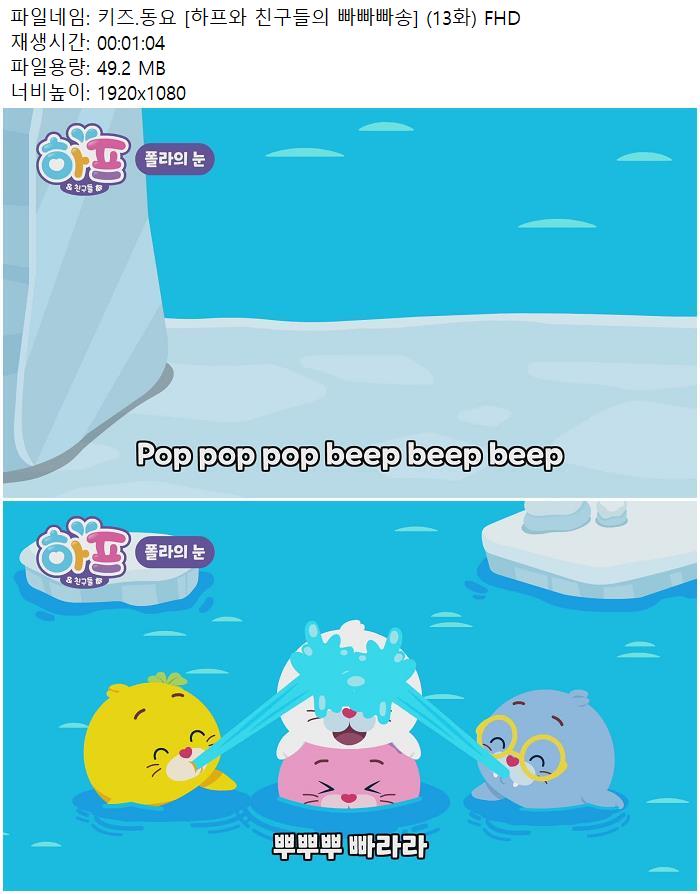 키즈.동요 [하프와 친구들의 빠빠빠송] (13화) FHD.mp4 49.2 M MP4 00:01:04 1920x1080