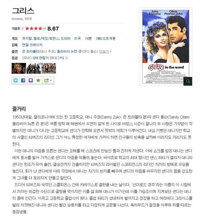 [ 뮤지컬영화 ] [ 그리스 ] Grease,1978 평점8.67