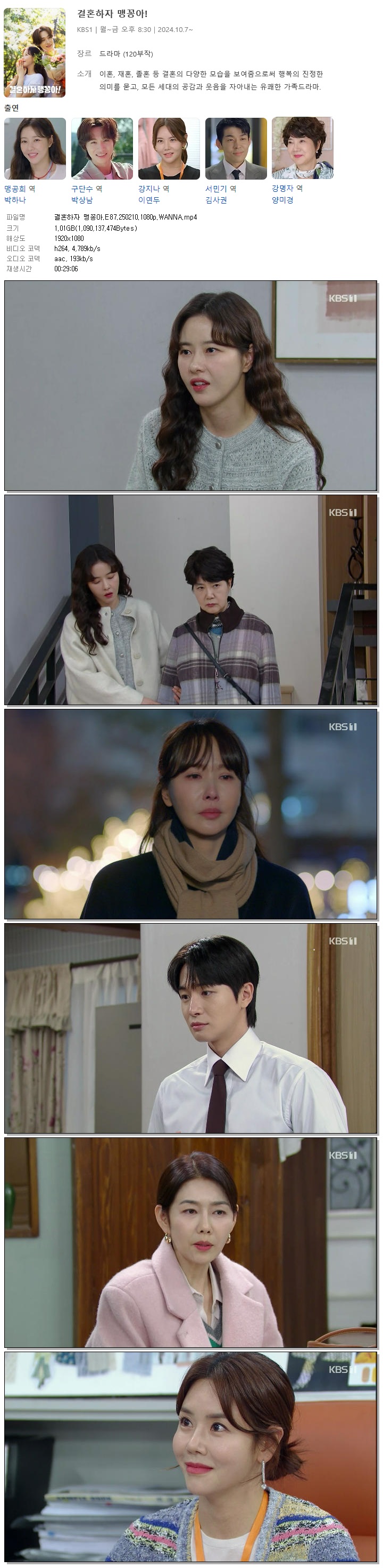 [KBS1] 결혼하자 맹꽁아.E87.250210.1080p.WANNA[박하나, 박상남]