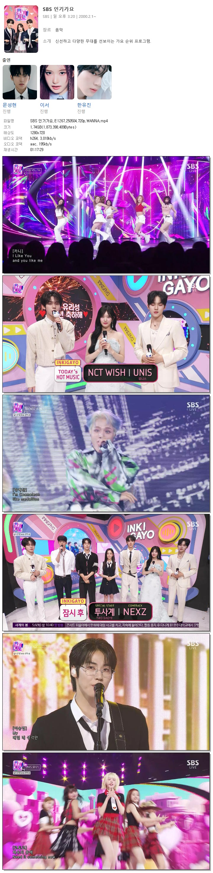 [SBS] SBS 인기가요.E1267.250504.720p.WANNA[하이라이트, 박우진]