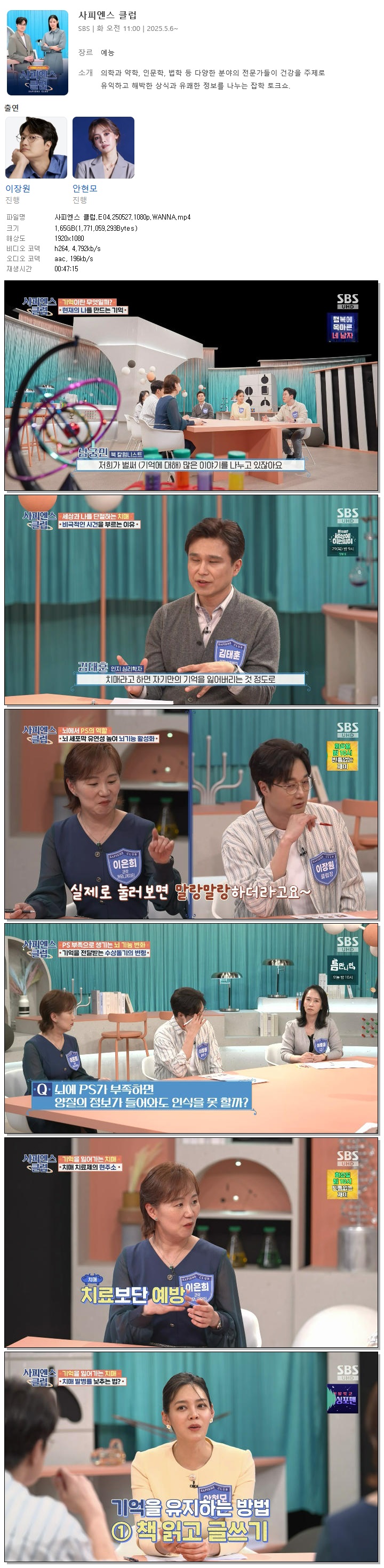 [SBS] 사피엔스 클럽.E04.250527.1080p.WANNA[이장원, 안현모]