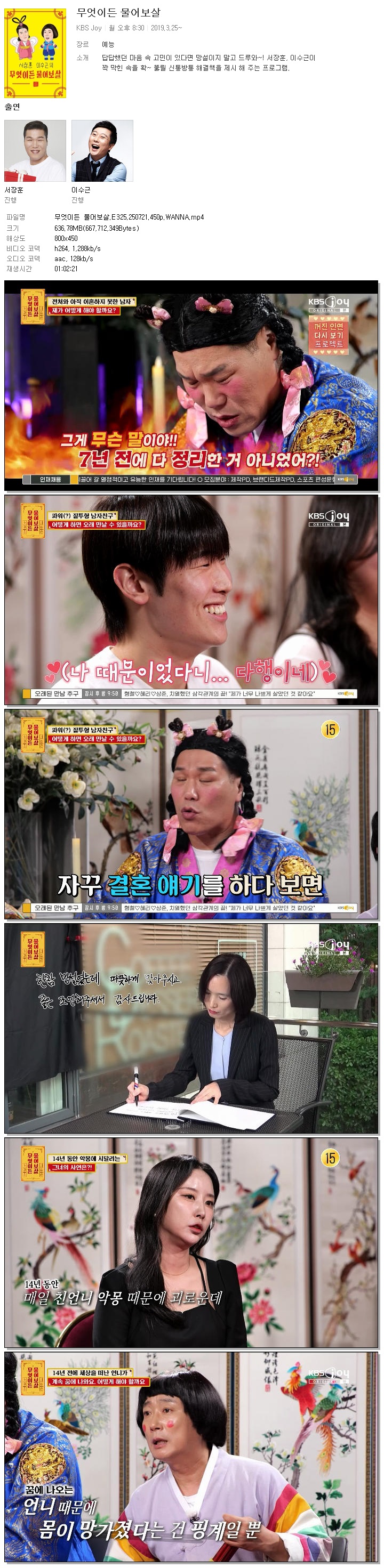 [KBS JOY] 무엇이든 물어보살.E325.250721.450p.WANNA[서장훈, 이수근]