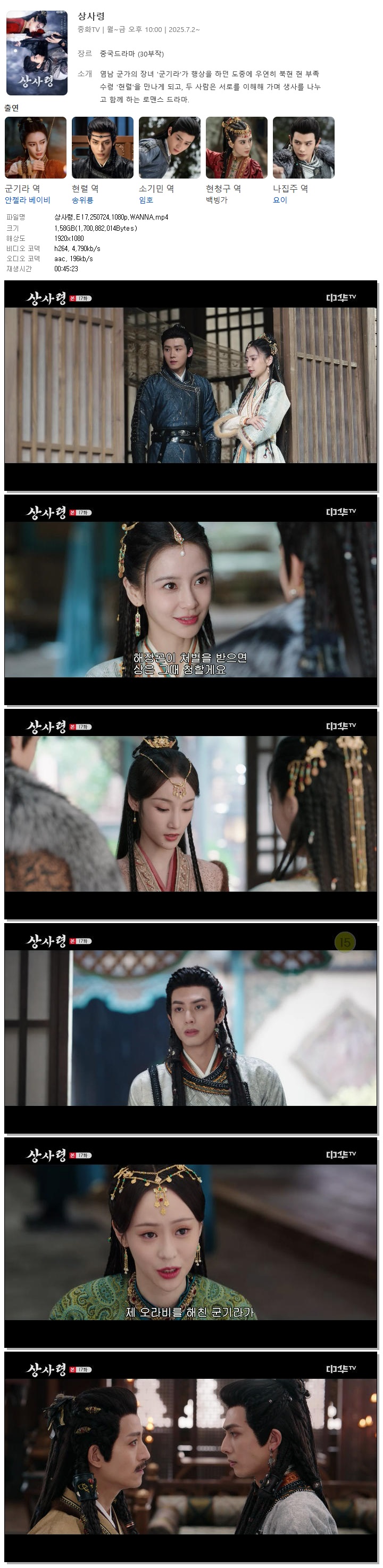 [중화TV] 상사령.E17.250724.1080p.WANNA[송위룡, 안젤라베이비]