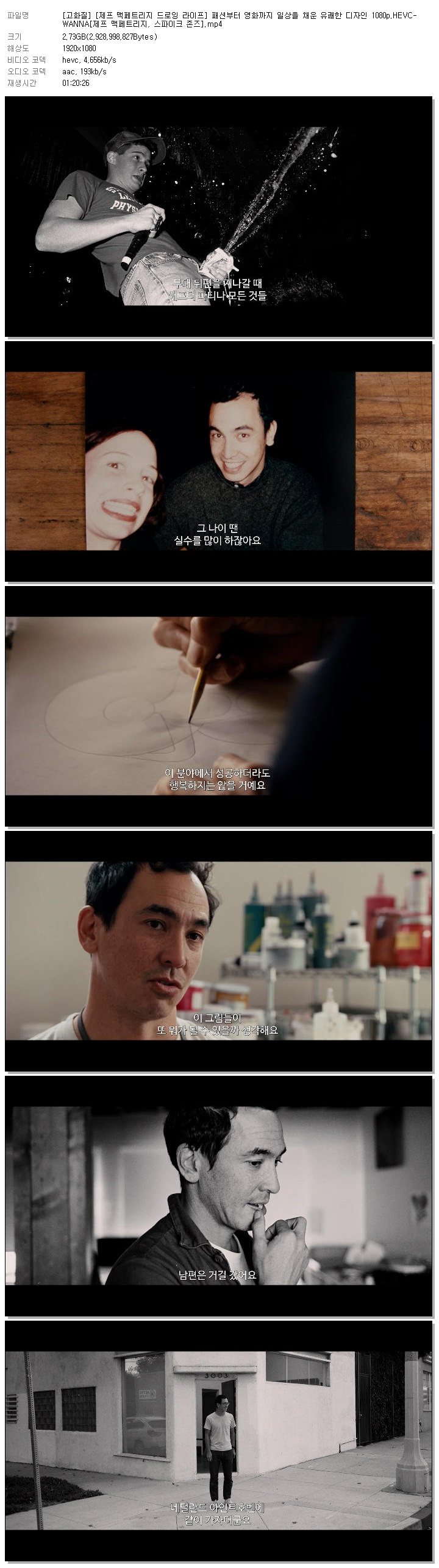 [고화질] [제프 맥페트리지 드로잉 라이프] 패션부터 영화까지 일상을 채운 유쾌한 디자인 1080p.HEVC-WANNA[제프 맥페트리지, 스파이크 존즈].mp4 2.7 G MP4 01:20:26 1920x1080