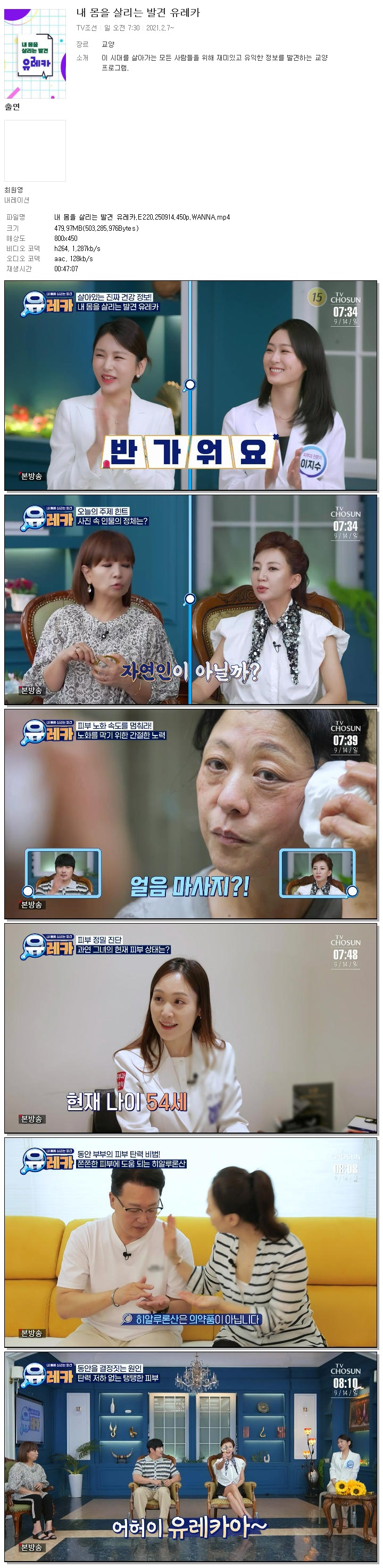 [TV조선] 내 몸을 살리는 발견 유레카.E220.250914.450p.WANNA