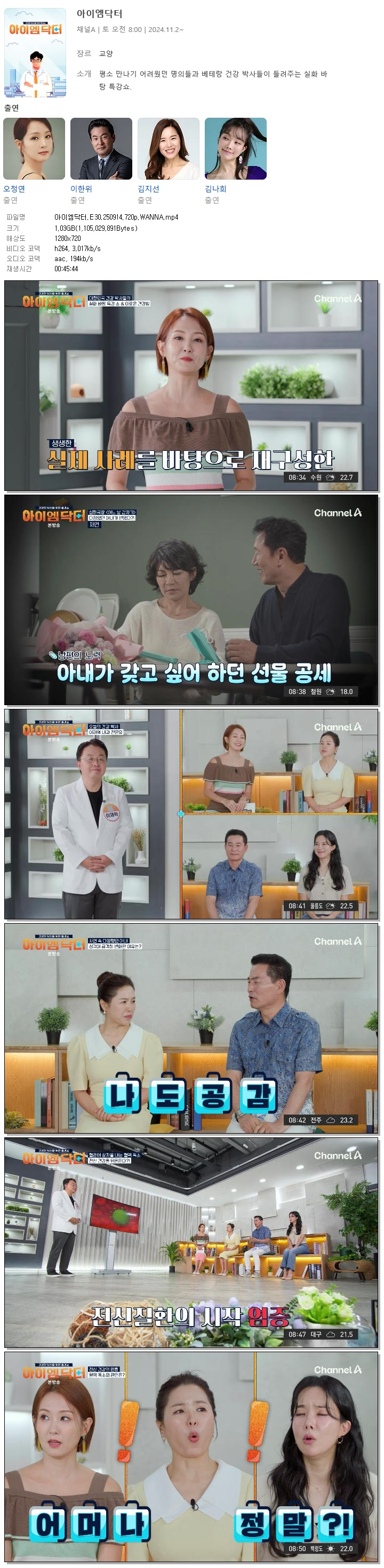 [채널A] 아이엠닥터.E30.250914.720p.WANNA[오정연, 이한위]
