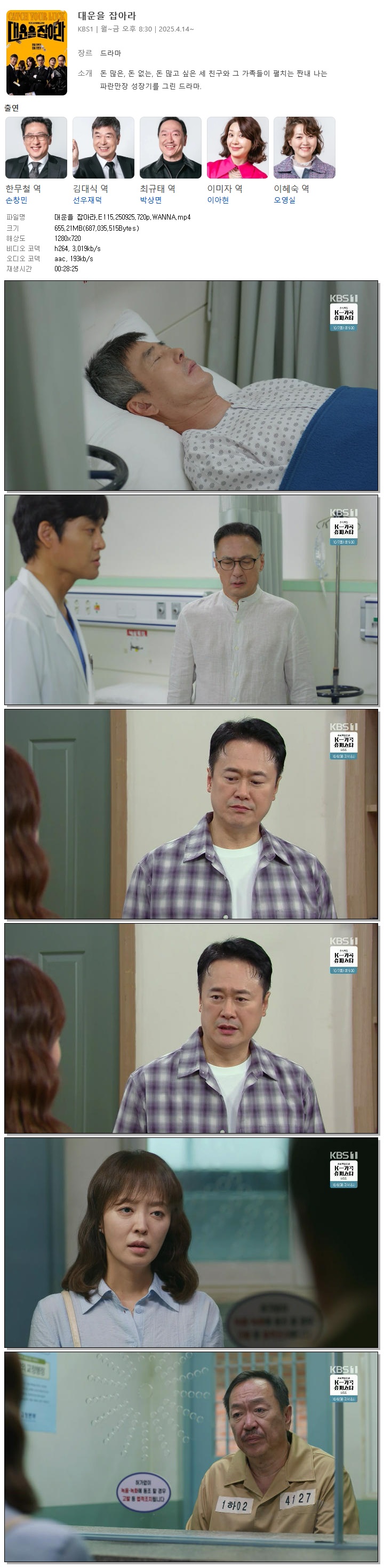 [KBS1] 대운을 잡아라.E115.250925.720p.WANNA[손창민, 이아현]