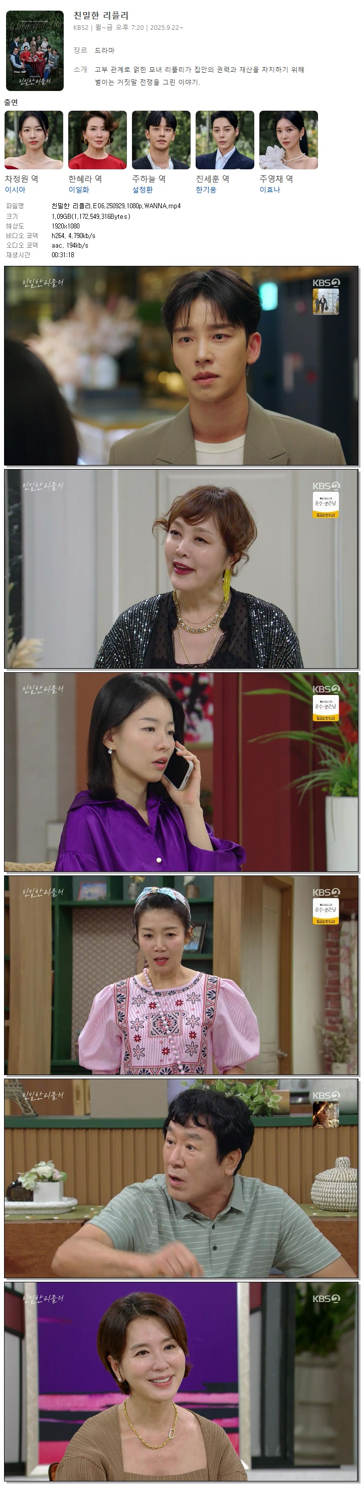 [KBS2] 친밀한 리플리.E06.250929.1080p.WANNA[이시아, 이일화]