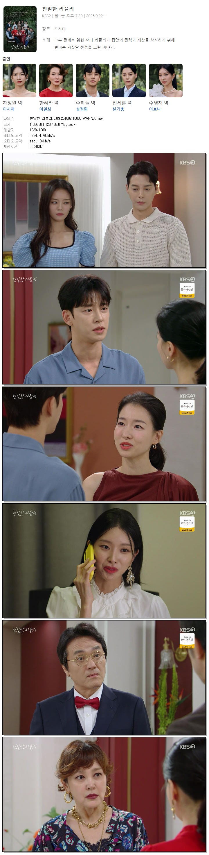 [KBS2] 친밀한 리플리.E09.251002.1080p.WANNA[이시아, 이일화]