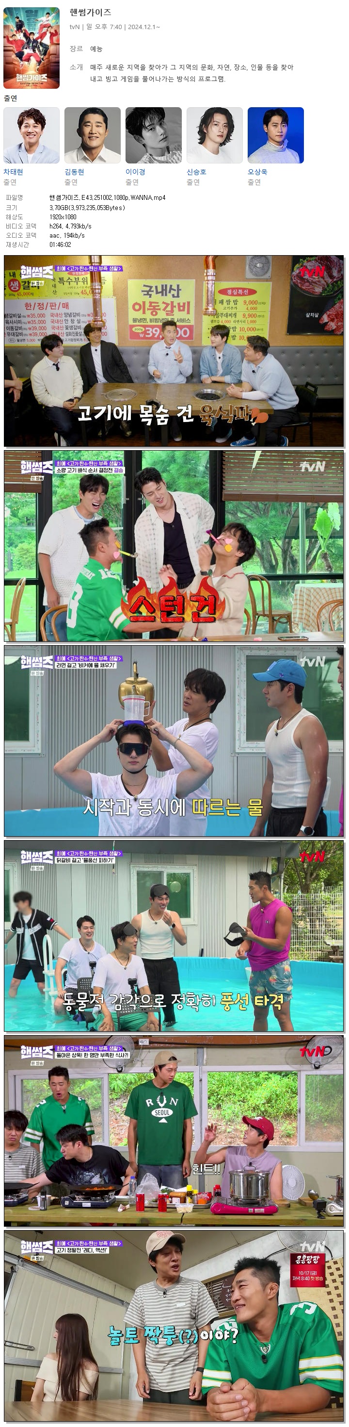 [TVN] 핸썸가이즈.E43.251002.1080p.WANNA[신승호, 차태현]