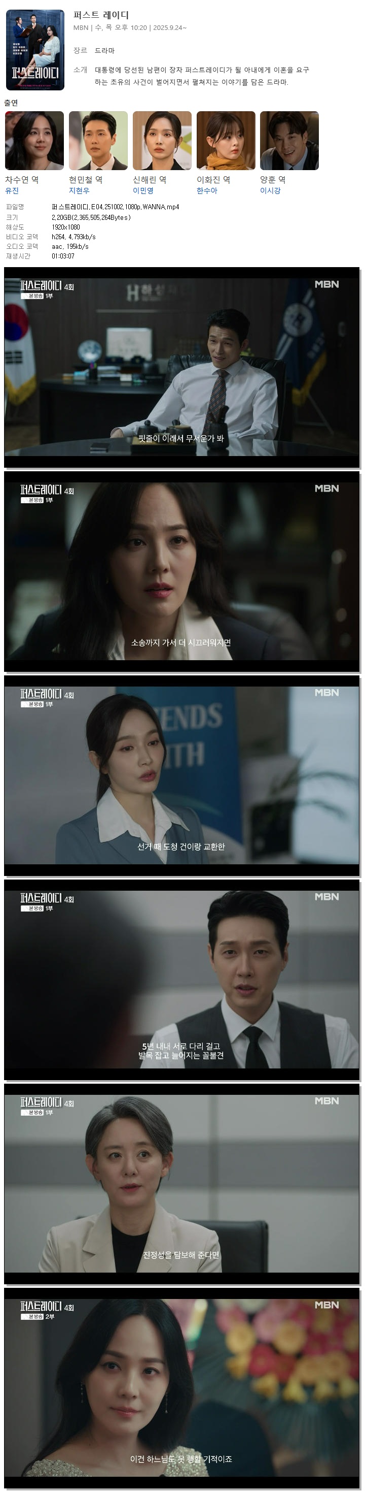 [MBN] 퍼스트레이디.E04.251002.1080p.WANNA[유진, 지현우]