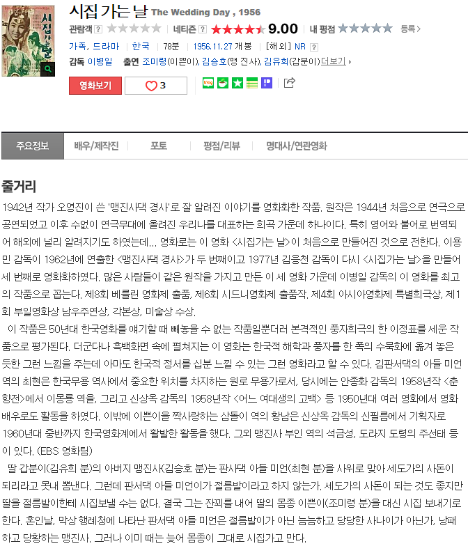 ico[고전] 시집 가는 날 1956 - 조미령, 김승호, 김유희 (코미디,드라마)/