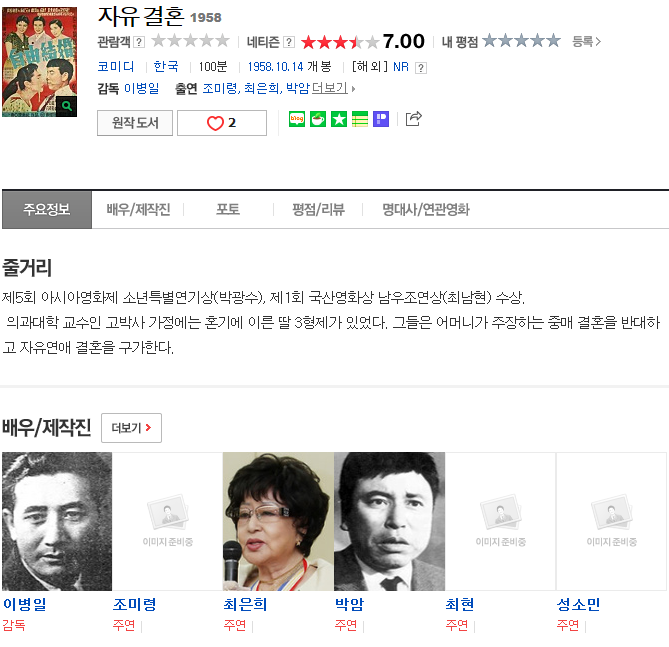 ico[고전] 자유결혼 1958 - 조미령, 최은희, 박암 (코미디,드라마)/