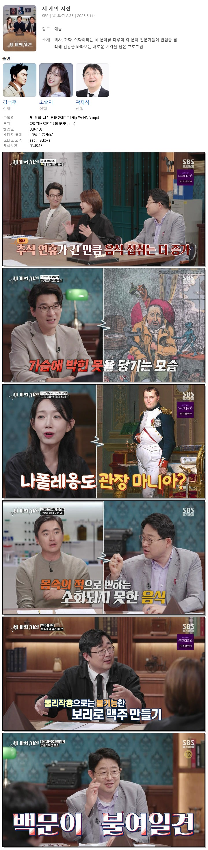 [SBS] 세 개의 시선.E16.251012.450p.WANNA[김석훈, 소슬지]