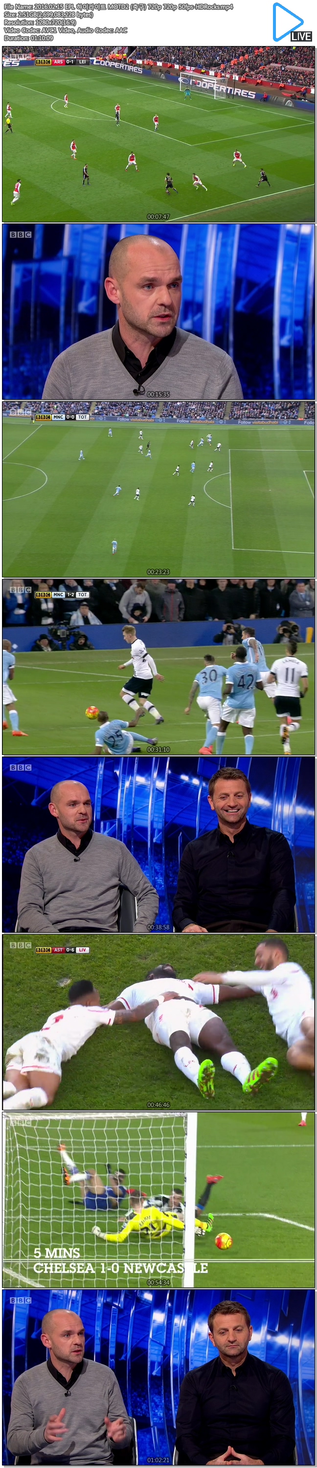 2016.02.15 EPL 하이라이트 MOTD2 (축구) 720p 720p 50fps-HDRocks.mp4 2.5 G MP4 01:10:09 1280x720