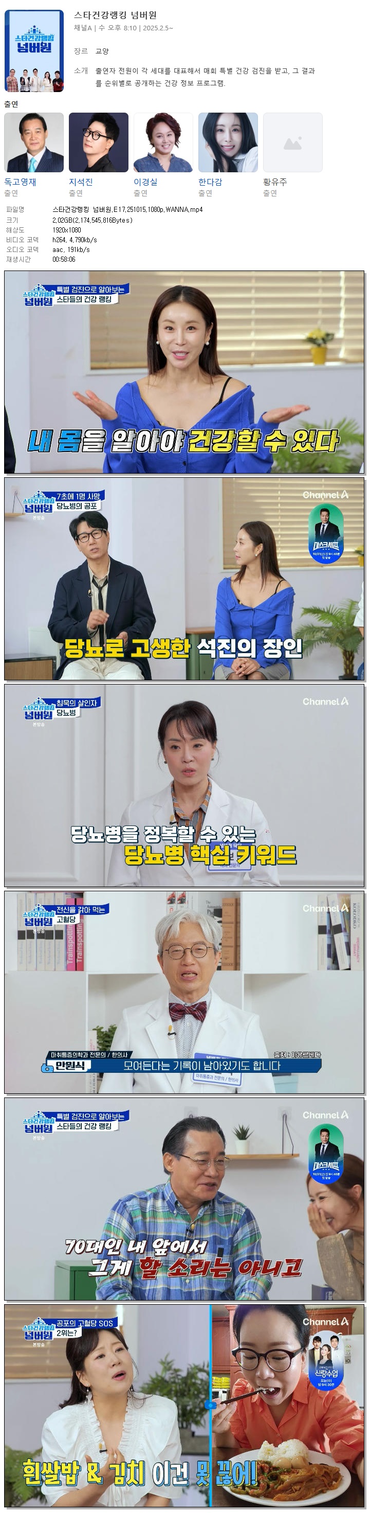 [채널A] 스타건강랭킹 넘버원.E17.251015.1080p.WANNA[지석진, 이경실]