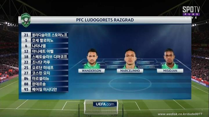 1617시즌 챔스 조별예선 아스날 vs 루도고레츠 161020 [국내방송]