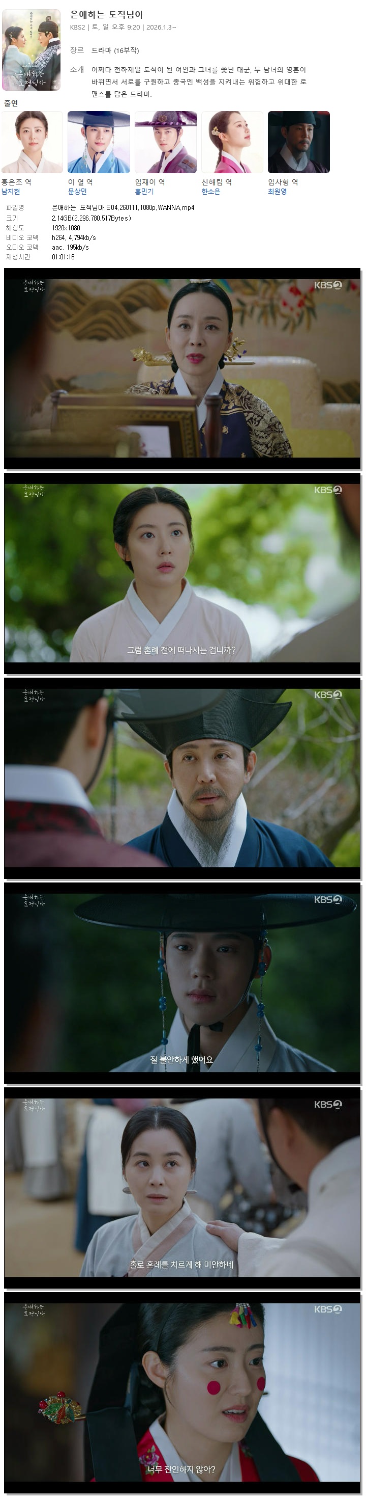 [KBS2] 은애하는 도적님아.E04.260111.1080p.WANNA[남지현, 문상민]