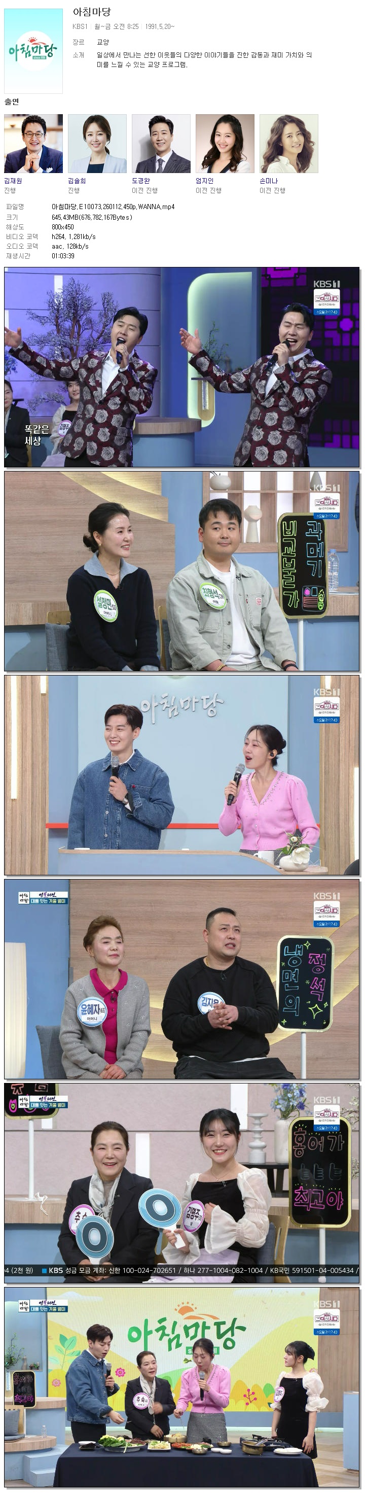 [KBS1] 아침마당.E10073.260112.450p.WANNA[엄지인, 박철규]