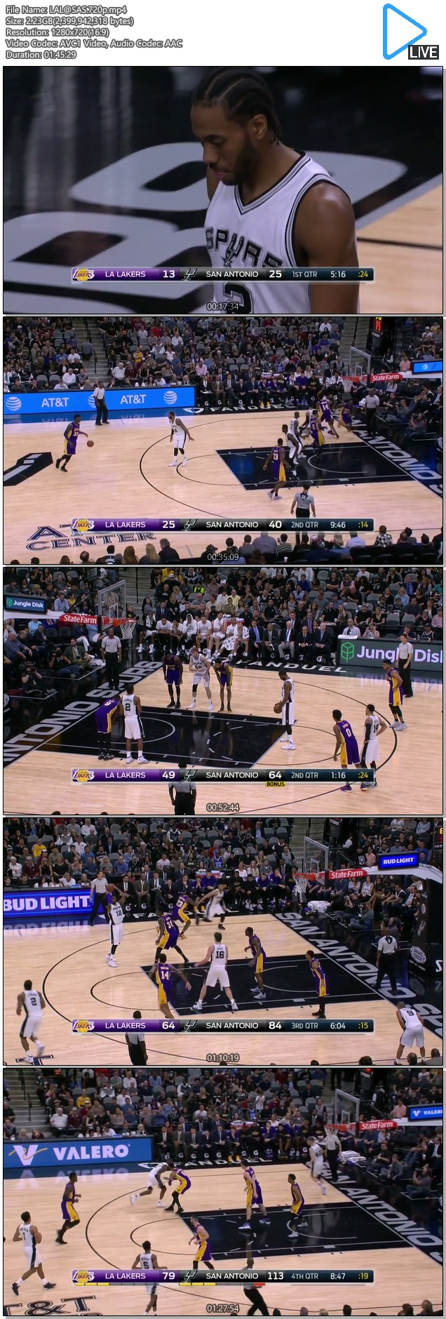 [NBA] 샌안토니오 vs LA레이커스 170113 [영어해설,고화질]