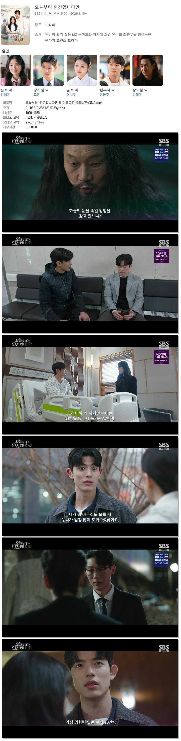 [SBS] 오늘부터 인간입니다만.E10.260221.1080p.WANNA[김혜윤, 로몬]