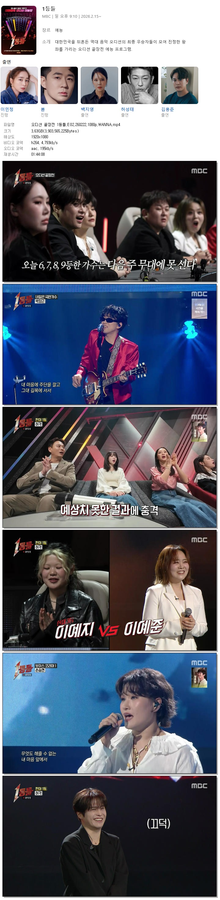 [MBC] 오디션 끝장전 1등들.E02.260222.1080p.WANNA[손승연, 허각]