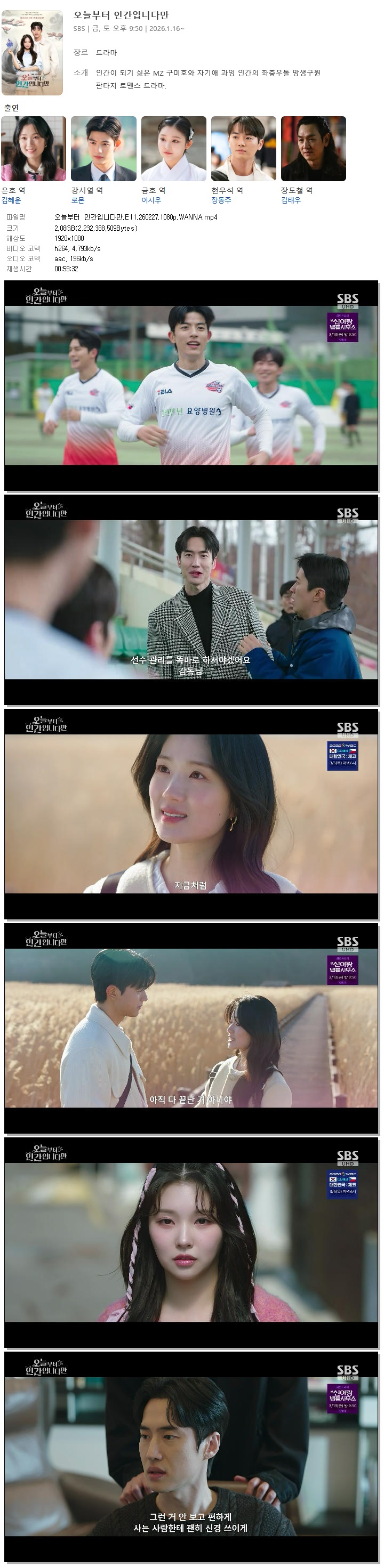 [SBS] 오늘부터 인간입니다만.E11.260227.1080p.WANNA[김혜윤, 로몬]