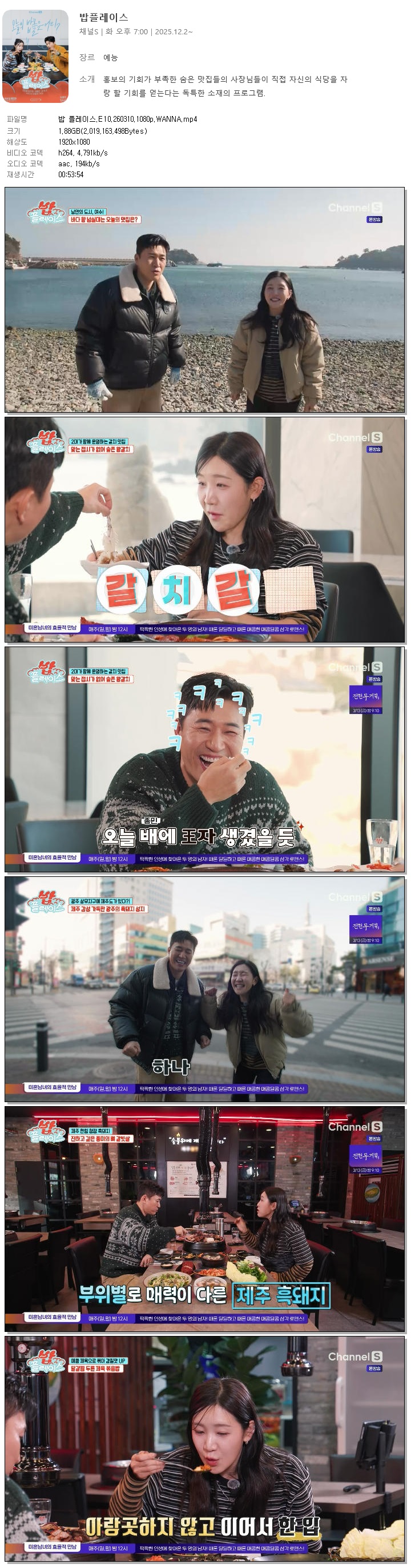 [채널S] 밥 플레이스.E10.260310.1080p.WANNA[김종민, 김지유]