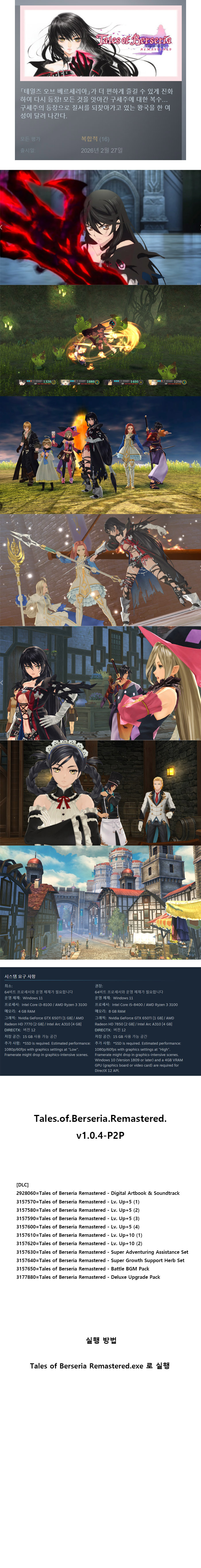 [한글무설치] 테일즈 오브 베르세리아 리마스터 최신버젼