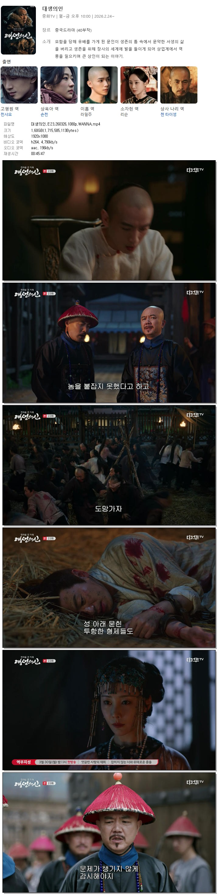 [중화TV] 대생의인.E23.260326.1080p.WANNA[천샤오, 손천]