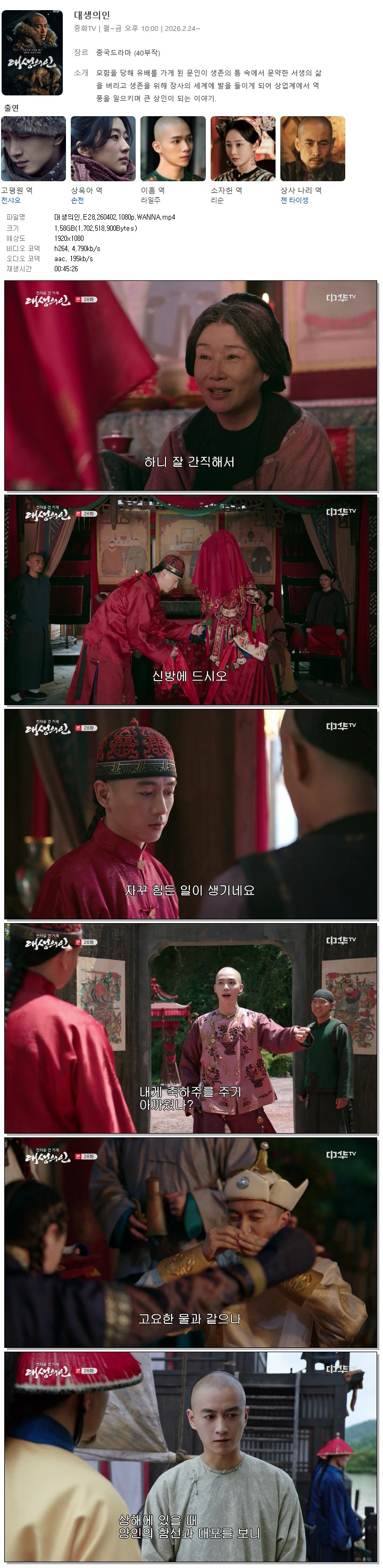 [중화TV] 대생의인.E28.260402.1080p.WANNA[천샤오, 손천]