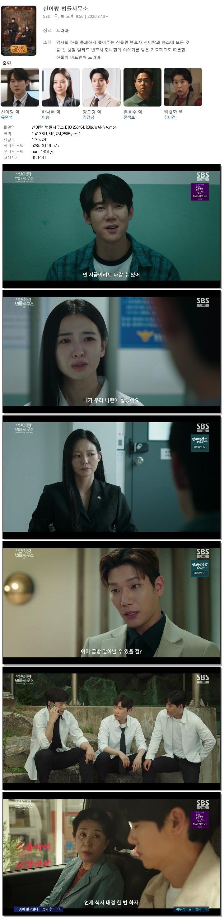 [SBS] 신이랑 법률사무소.E08.260404.720p.WANNA[유연석, 이솜]