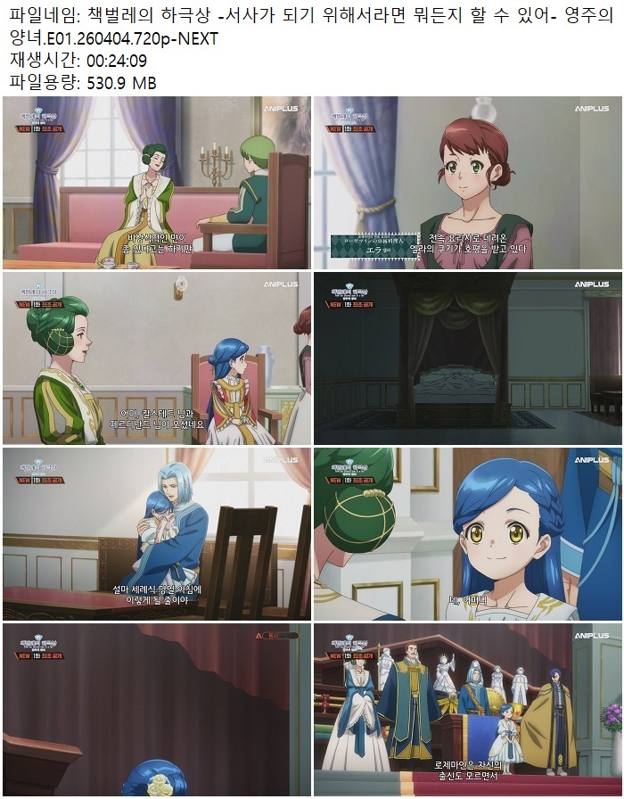 | 책벌레의 하극상 -서사가 되기 위해서라면 뭐든지 할 수 있어- 영주의 양녀.E01.260404.720p-NEXT.mp4 |