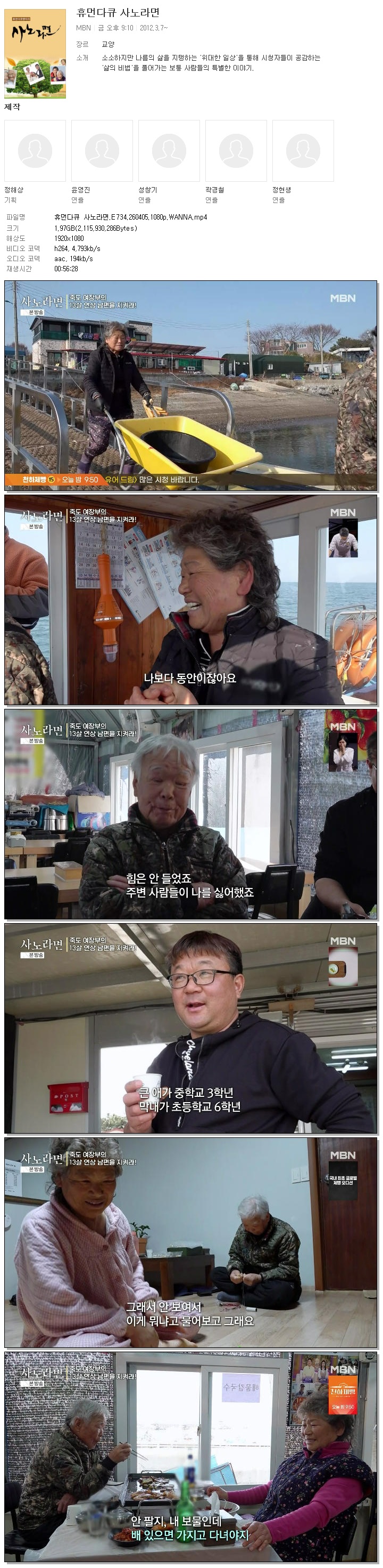 [MBN] 휴먼다큐 사노라면.E734.260405.1080p.WANNA