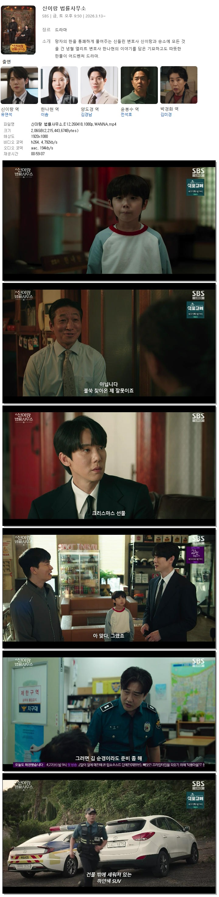 [SBS] 신이랑 법률사무소.E12.260418.1080p.WANNA[유연석, 이솜]