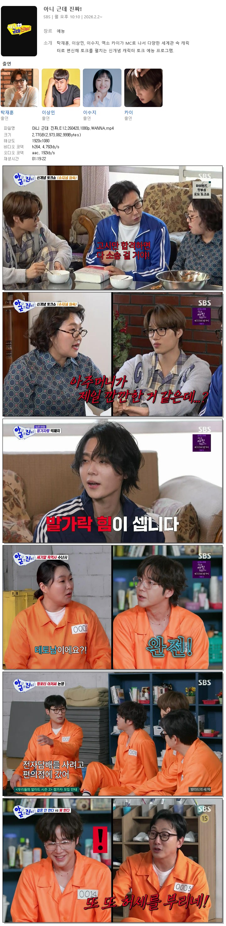 [SBS] 아니 근데 진짜.E12.260420.1080p.WANNA[최다니엘, 장근석]