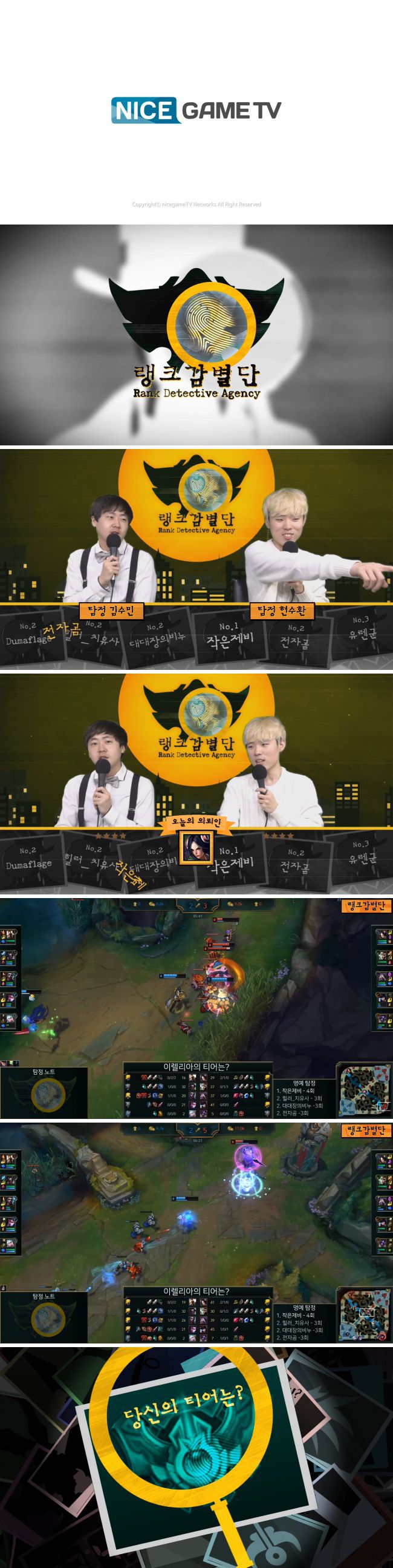돌아온 랭크 감별단 19화 1부2018년 다시 돌아온 랭크 감별단리플레이를 보고 티어를 맞추는본격 티어 맞추기 게임15년간 승부 예측만한 펠레 좁쌀과 썸머킴과 함께하는 방송
