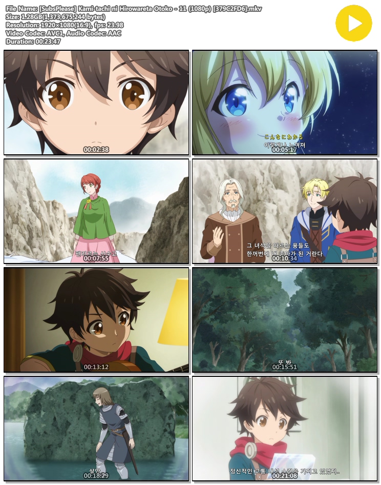 | [SubsPlease] Kami-tachi ni Hirowareta Otoko - 11 (1080p) [379C2FD6].mkv | 1.3 G | MKV | 00:23:47 | 1920x1080 |