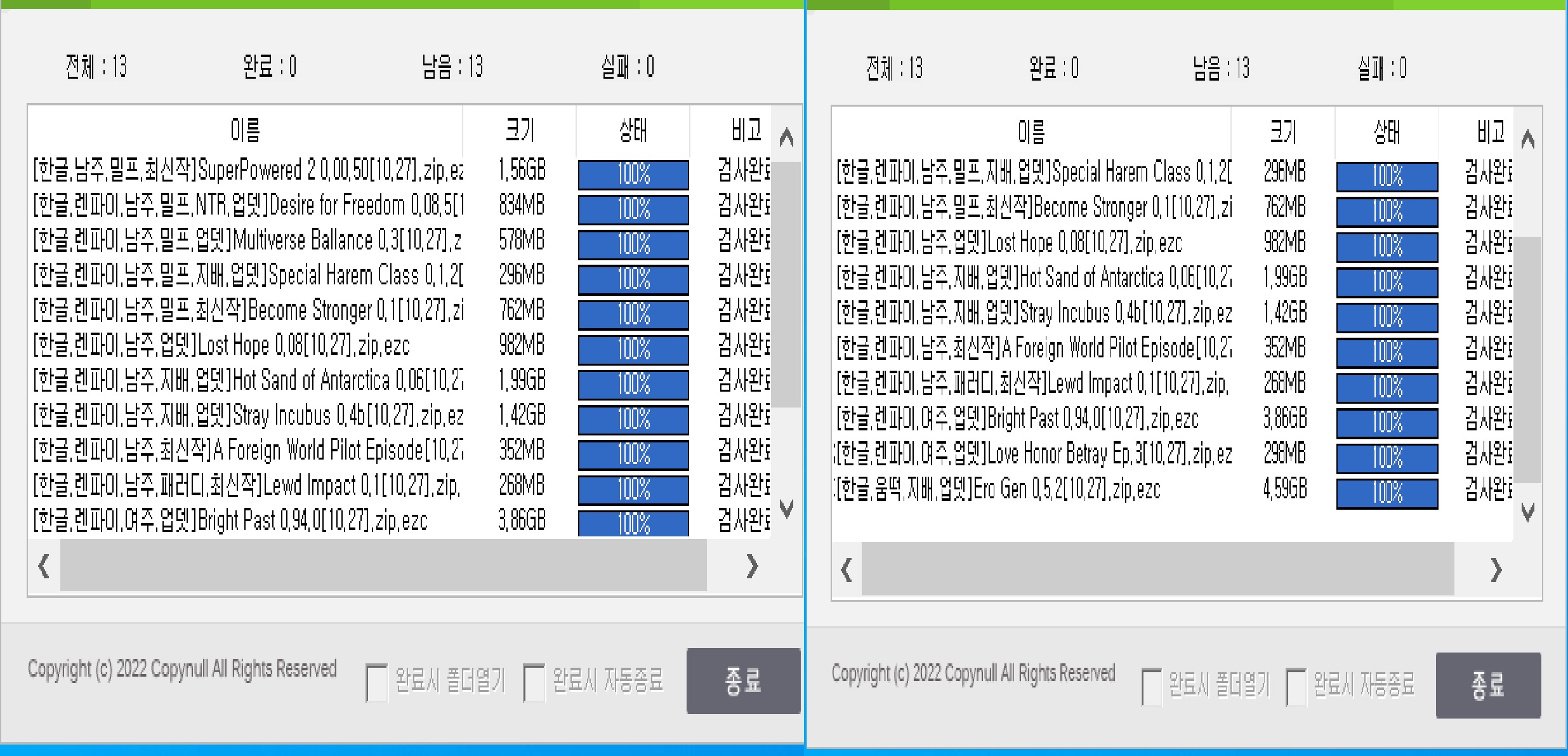 파일캐스트 다운로더 설치하기 모든 브라우저 호환 용량 17MB 내 PC는 이미 파일캐스트가 설치되어있습니다. 설치 후 다운로드가 되지 않는다면 재설치를 권장합니다.