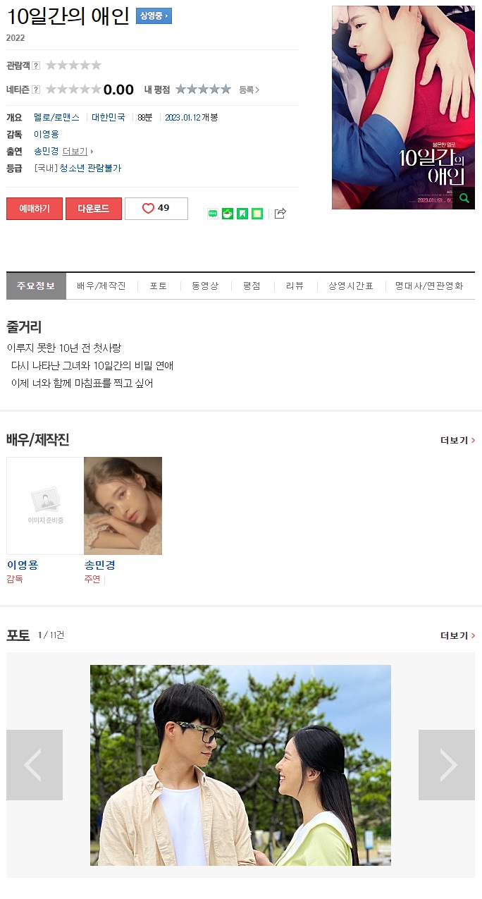 ico(청불,멜로,로맨스) [ 10일간의 애인 ] FHD (송민경, 우충현)/