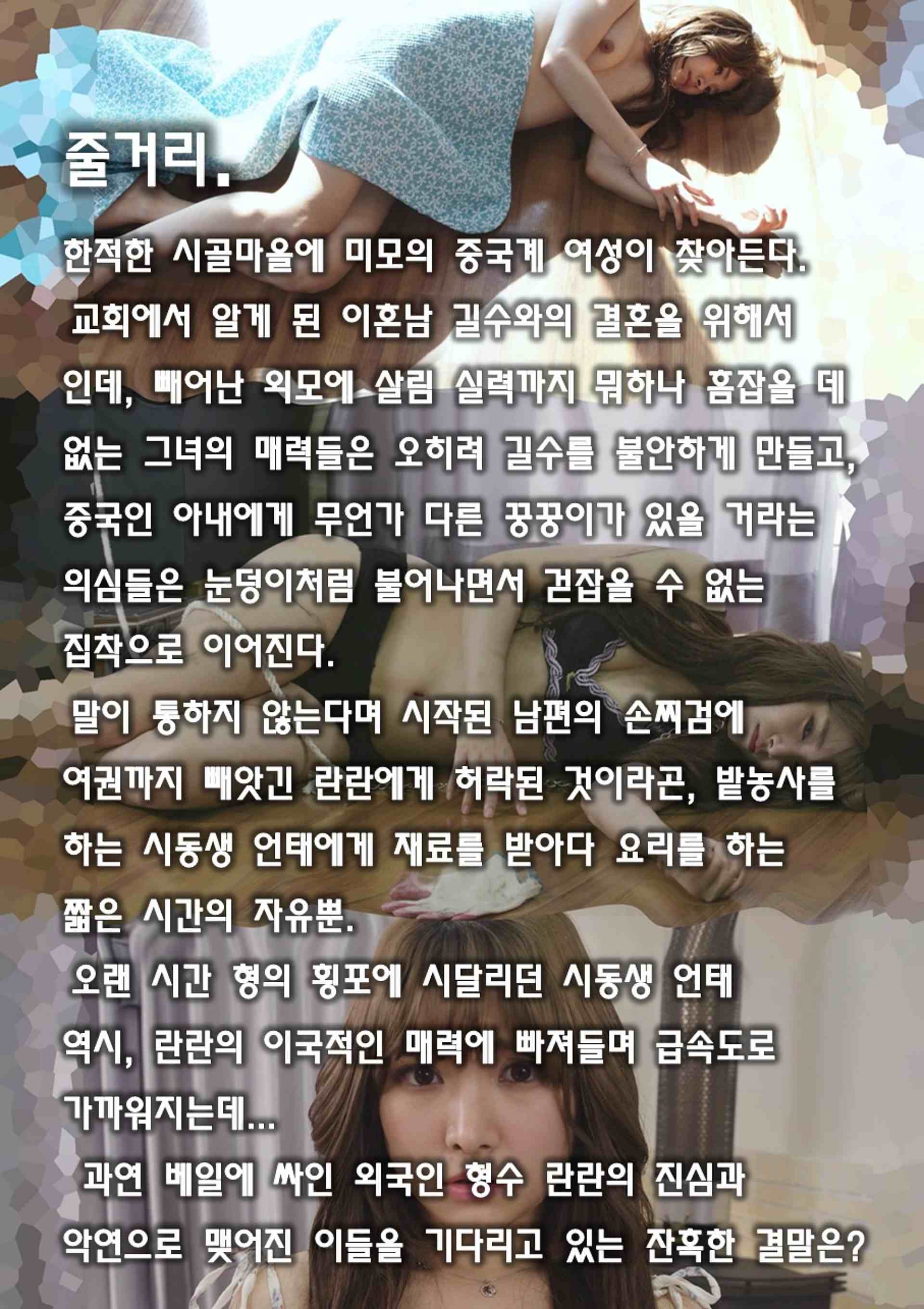 본 정보내용은 청소년유해매체물로서 정보통신망이용촉진 및 정보보호 등에 관한 법률 및 청소년보호법의 규정에 의하여 만 19세 미만의 청소년이 이용할 수 없습니다. 아동·청소년 음란물(야동,포르노)을 제작·배포·소지한 자는 형사 처벌을 받을 수 있습니다.