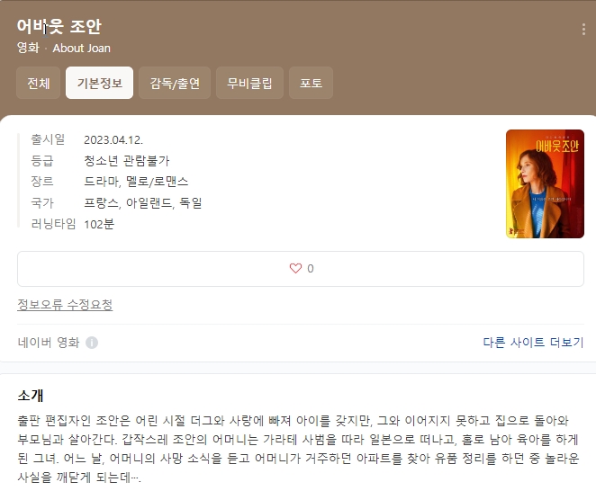 ico(멜로,로맨스) [ 어바웃조안 ] FHD (이자벨 위페르, 라르스 아이딩어)/