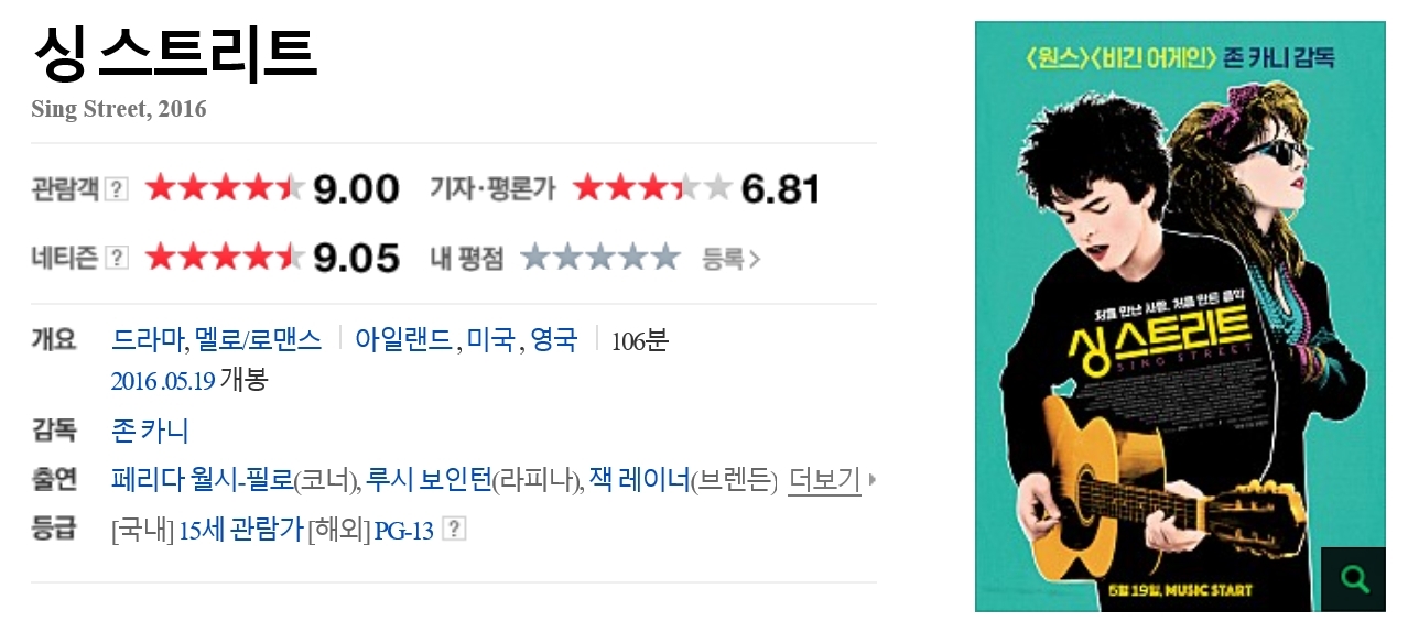 | Sing.Street.2016.1080p.BluRay.x264-GECKOS.mkv | 7.7 G | 01:45:24 | 1920x1080 |