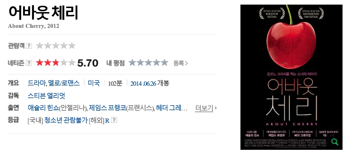 | About.Cherry.2012.1080p.BluRay.x264-Japhson.mkv | 7.6 G | 01:42:11 | 1920x1080 |