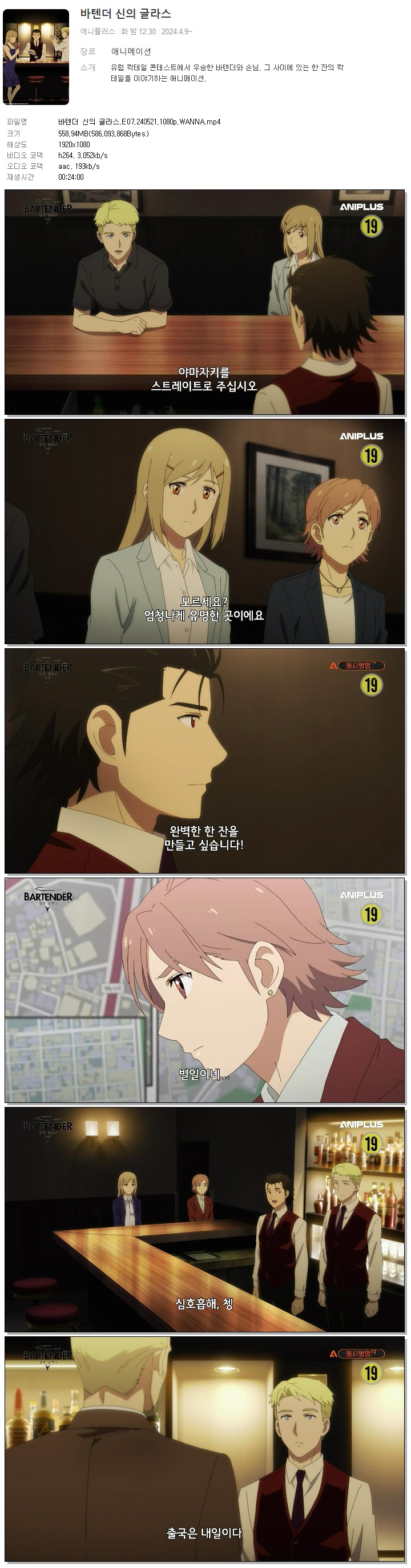 | 바텐더 신의 글라스.E07.240521.1080p.WANNA.mp4 | 558.9 M | 00:24:00 | 1920x1080 |